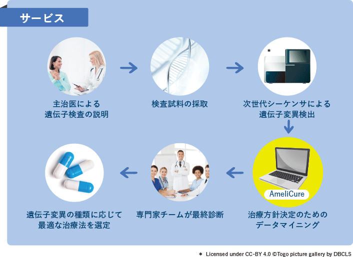 - AmeliCure 難病遺伝子変異レポートは、変異情報を分析し、疾患原因候補をレポートするサービスです。 初回検査に加え、定期再解析を実施することで、急拡大を続ける科学的知見を取り入れ、継続的に疾患原因探索を行うことができます。